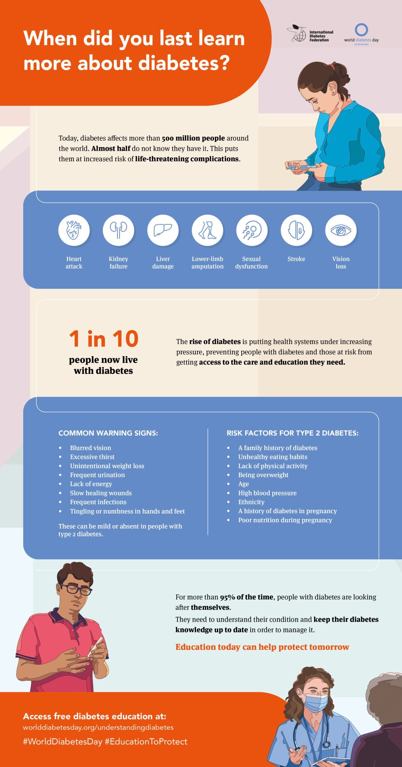 World Diabetes Day (WDD) was created in 1991 by IDF and the World Health Organization in response to growing concerns about the escalating health threat posed by diabetes.