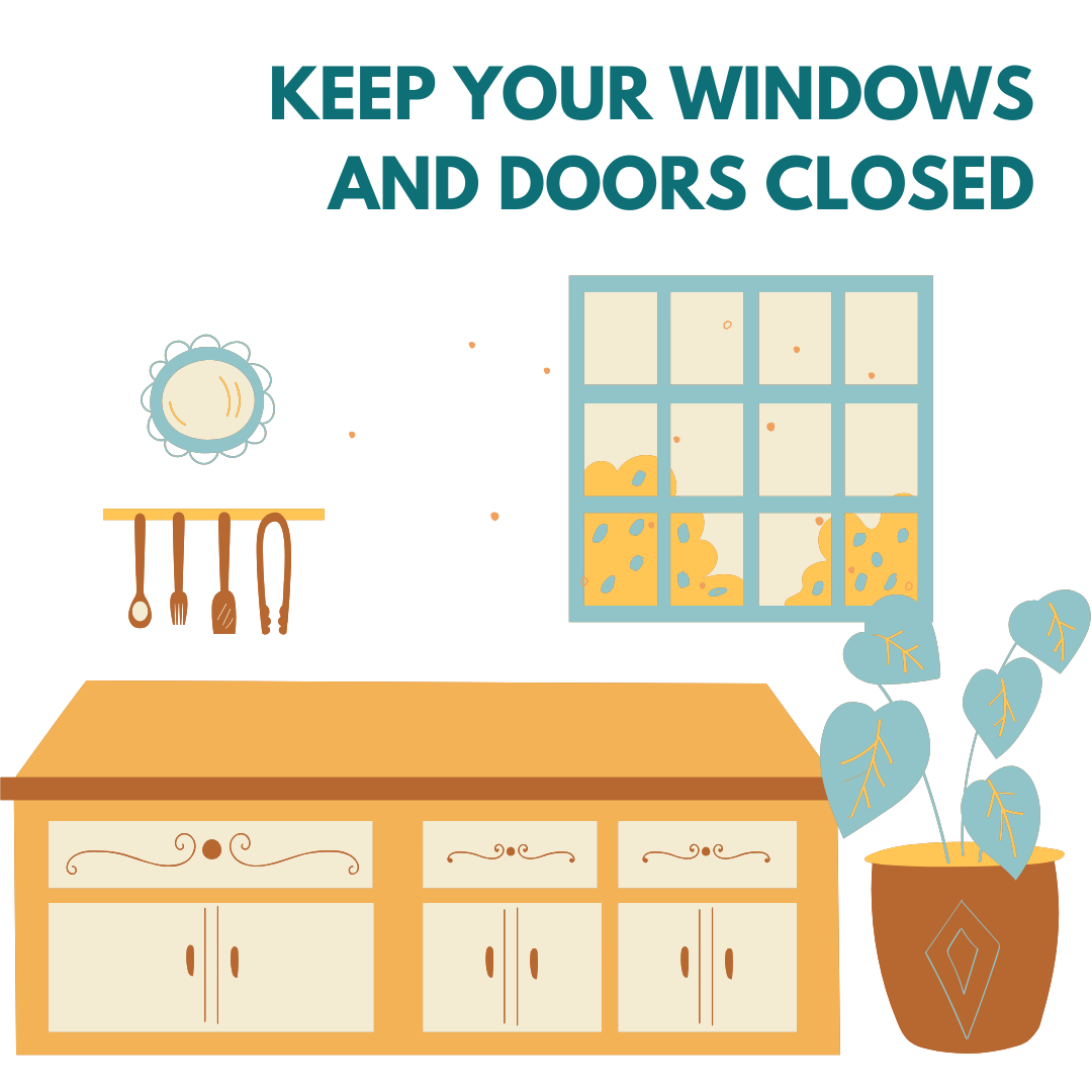Keep windows shut in cars and buildings.