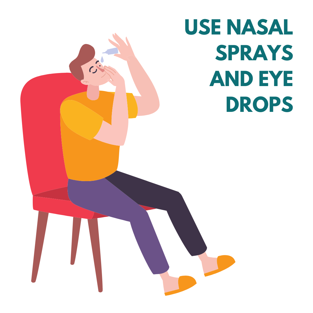 Use Nasal Sprays and Eye Drops to help alleviate hay fever symptoms. Consult with a pharmacist for recommendations.