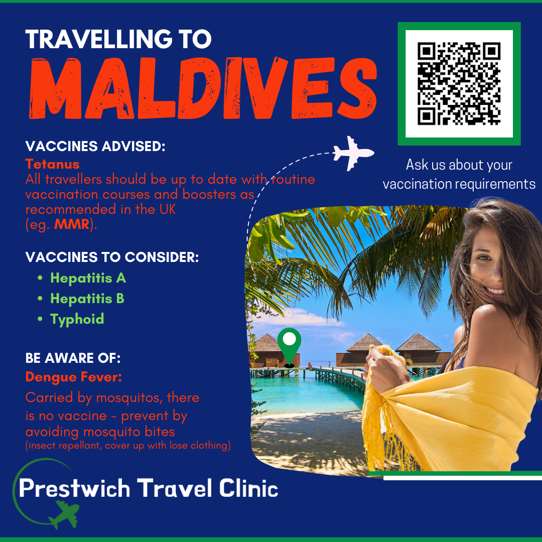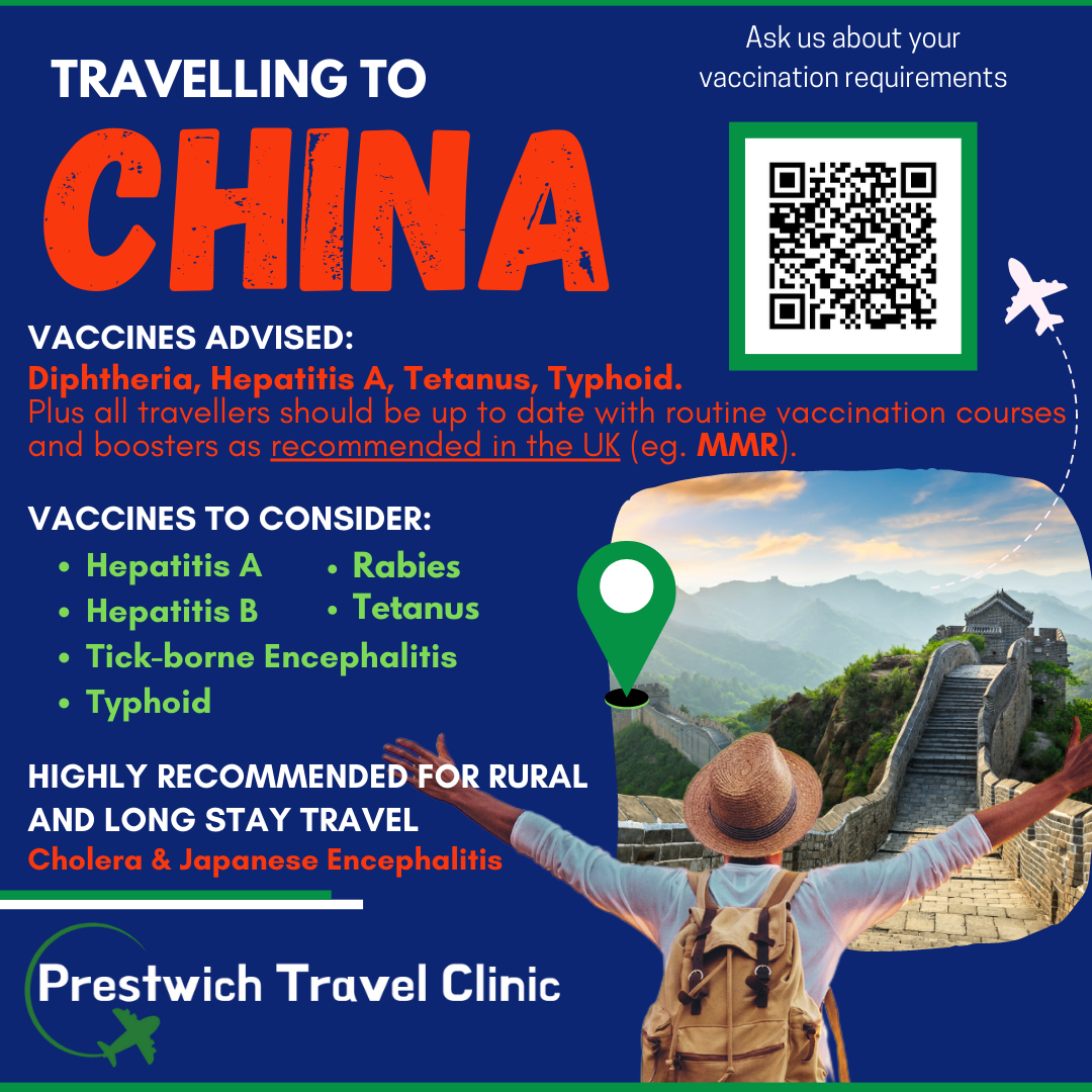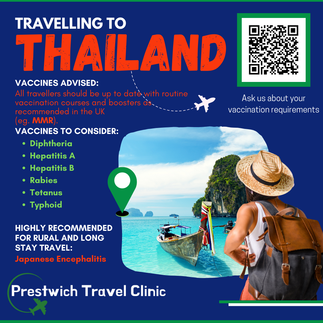Here at Prestwich Travel clinic we can advise on which vaccinations are required or recommended for the areas you are travelling to. Book your Free Travel Consultation HERE.